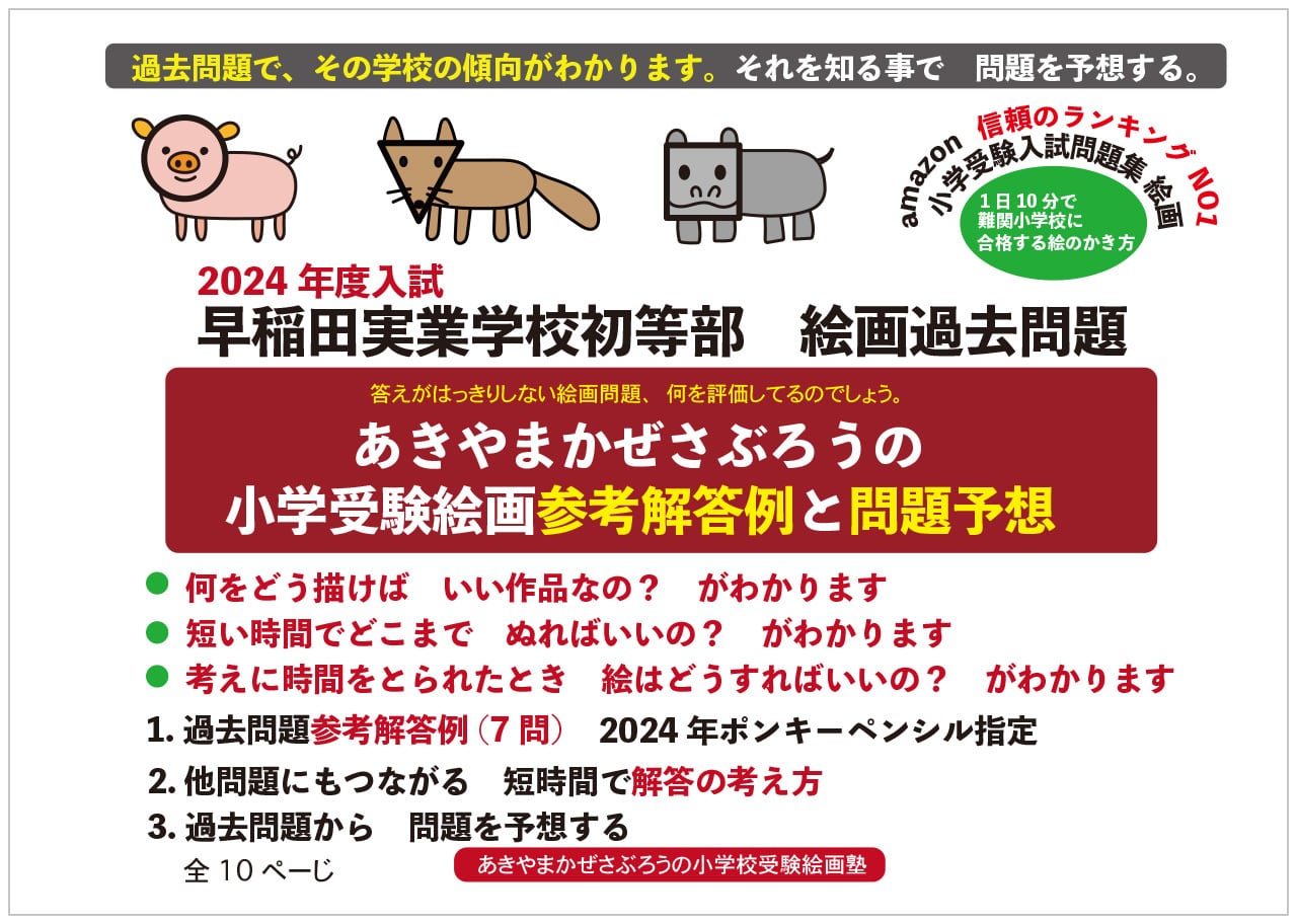 お子様の絵画スキルを引き出し、試験対策をしっかりサポートする「2024年度入試 早稲田実業学校初等部 絵画過去問題 参考解答例と問題予想」です!
