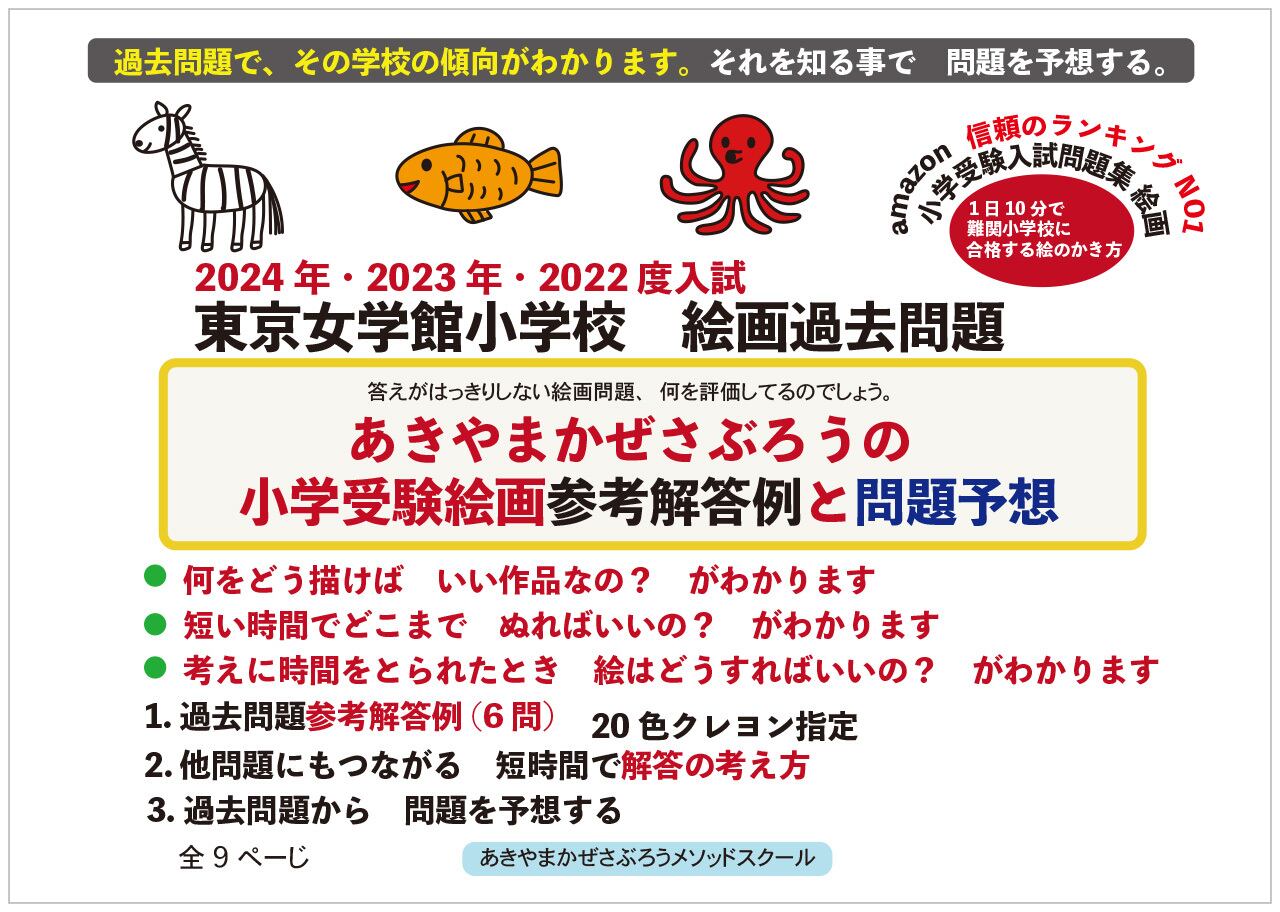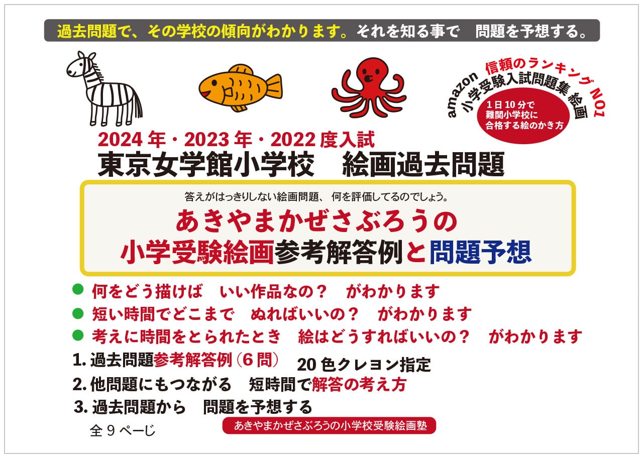 お子様の創造力を引き出し、試験準備をしっかりとサポートする「2024年・2023年・2022年度入試 東京女学館小学校 絵画過去問題 参考解答例と問題予想」です!